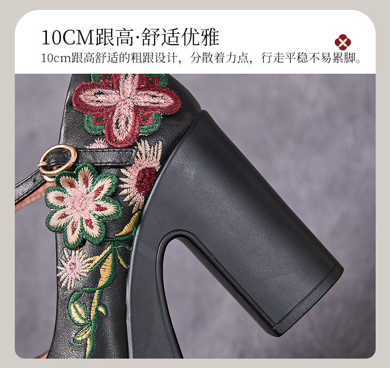 嫔妃丽人头层牛皮时尚超高跟学院风民族风刺绣时尚百搭小个子单鞋222(富贵花)